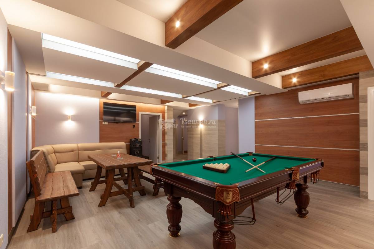 Зал № 1: финская парная, круглый бассейн, дубовая купель, Русский бильярд 8 футов